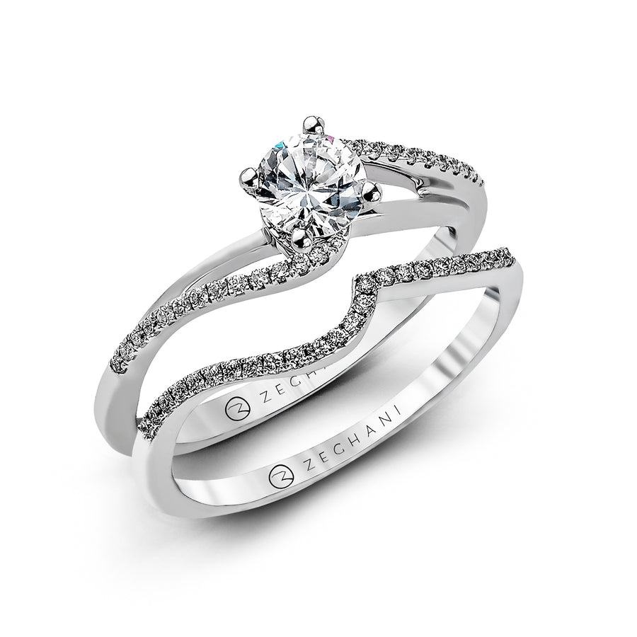Meticulously crafted in 14k white gold, this wedding set features elegantly curved bands that complement each other perfectly.