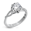 This romantic engagement ring showcases a brilliant round-cut center diamond accented by a twisted band of pavé-set diamonds. The elegant split-shank design adds graceful movement and sparkle, blending timeless sophistication with a modern flourish.