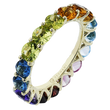 This vibrant eternity band features a full spectrum of round-cut gemstones, creating a stunning rainbow effect around the finger. Set in yellow gold, each stone adds a burst of color and joy, making it a playful yet elegant statement piece.