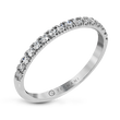 This band showcases a sleek row of round brilliant diamonds in a classic prong setting, crafted in white gold. Its minimalist elegance makes it ideal for stacking, pairing with an engagement ring, or wearing solo for subtle sparkle.
